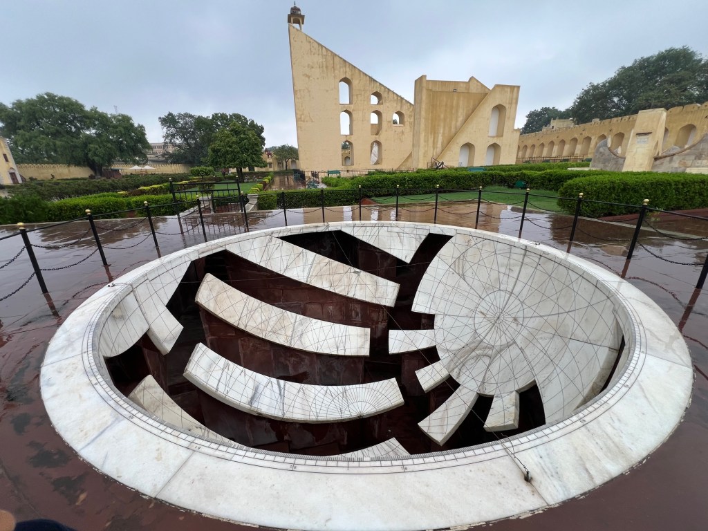 - Samrat Yantra: A giant sundial that measures time with incredible accuracy. The shadow of the triangular gnomon indicates the time of day at Jaipur. This gives the actual time at the place and might differ from the IST at Prayagraj that our watches show. At Jaipur, it can vary between 10 minutes to 41 minutes. At the time of our visit, this difference was of the order of 31 minutes.