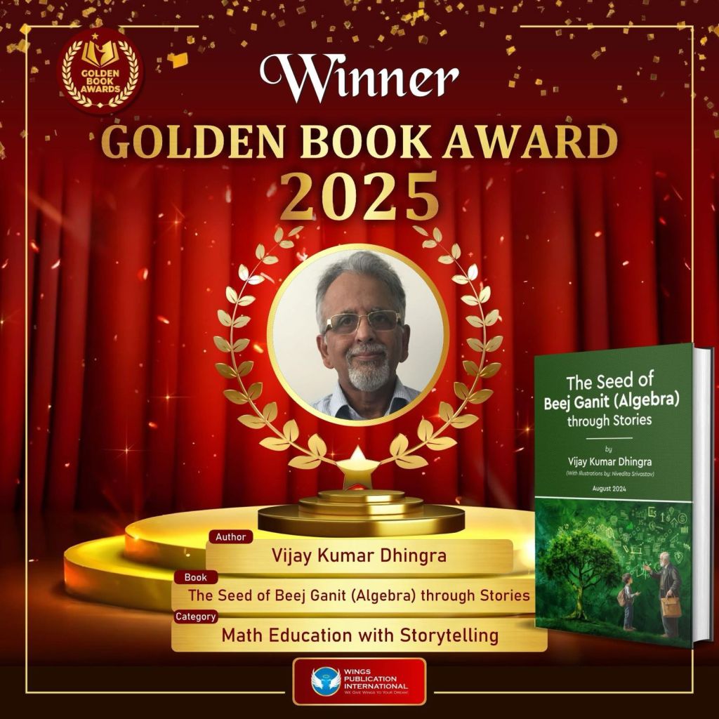 I am delighted to share that my book, The Seed of Beej Ganit (Algebra) through Stories, has been honored with the Golden Book Award 2025. This recognition reinforces my belief in the power of storytelling as a bridge to make mathematical concepts more engaging and accessible.